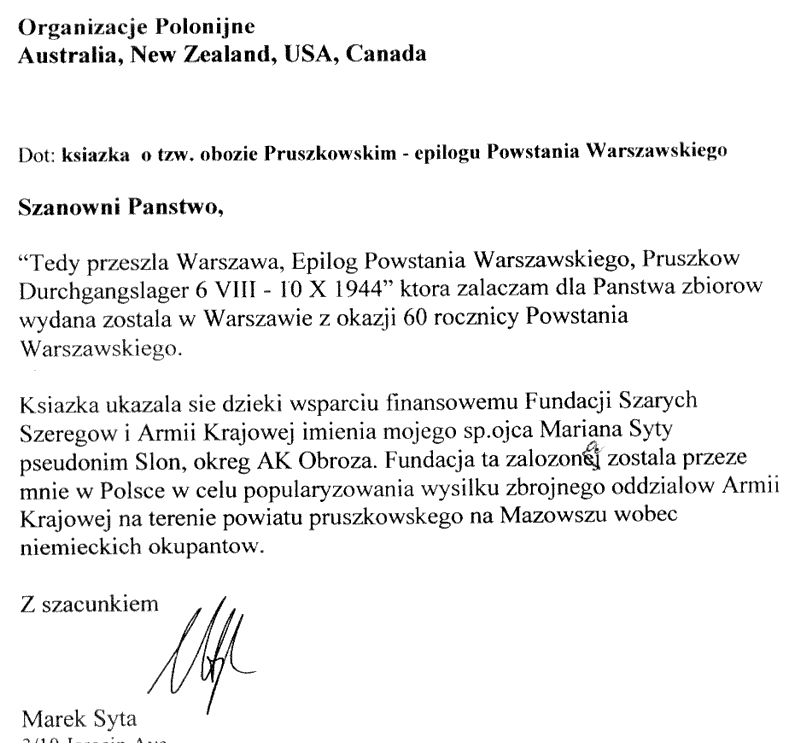 Okręg Warszawa-Powiat ŚZŻAK od początku istnienia utrzymuje kontakt z Weteranami Armii Krajowej na świecie oraz z Polonią.